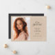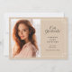 Ett vackert studenten-fotomeddelande har ett lodrät- eller porträtt-orienterat foto till lämnat, med "vårt student" och ditt student namn, skolan och studenten till högerna. Fintvätt av geometriska detaljer slutför utseendet. Lägg till ett personligt meddelande på baksidan, tillsammans med ett ytterligare foto.
