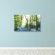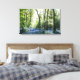 Vår solstrålar skiner genom träd in i engelska blåklockor i denna ikoniska bild av den brittiska landsbygden under våren.