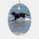 Vår svart Labrador som hämtar frisbeen från sjön Julgransprydnad Keramik
