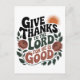 Fira tacksamhet och tro med denna vackert utformade generativa design med den upplyftande bibelversen "Tacka Herren, ty han är god". Med sina rika jordnära toner, blomsterdekorationer och ett varmt soluppgångsmotiv. Denna design utstrålar fred och tacksamhet.