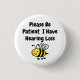 Cute-brickan för hörseln försämrades och dövet som förmedlar budskapet. Med budskapet "Var tålamod, jag har hört förlust" med en tecknad bild av ett bi.
