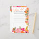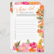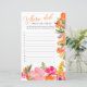 Testa dina gästers kunskap om parets äventyr med detta roliga bröllopsduschspelkort "Vart åkte paret?". Med en livlig akvarellblommig design i levande nyanser av rosa, orange och gult, uppmanar detta spel gästerna att gissa vart paret har rest baserat på foton eller ledtrådar. De eleganta blommiga accenterna ger en ljus och glad touch, perfekt för boho eller blomsterinspirerade bröllopsduschfiranden. Det är en bra isbrytare som firar parets kärlekshistoria och skapar en minnesvärd upplevelse för alla.