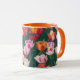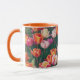 Söten, blommigt mugg, har mitt originalfoto av färgstarka tulpaner i en trädgård, som bearbetas med en vattenfärgsteknik för ett illustrerat, målat stil med ett pekfinger av stollig. Den har en orange färg inuti och på handtaget, som kan ändras om så önskas. Det här är 11 uns mugg, bara den perfekt som är storlek för ditt bryggkaffe eller te - eller till och med hett choklad! Det skulle vara en underbar gåva och man kan lägga in paket med kaffe, tepåsar eller hett choklad. En annan presentidé är att lägga en liten växt i den för att göra extra speciellt för din älskade.