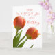 Födelsedagskort för guddotter med orange och rosa vår-tulpaner och tankfull vers.