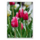 En genomgående storm lägger snö på tre rosa tulpaner. Observera att kortet kan anpassas med din egen personliga inskrift.