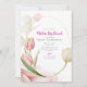 Vänner och familj i inbjudan till ett evenemang i Mors dag med denna vackra rosa- och vita vår-tulpandesign. Formuleringen är fullständigt redigerbar för att du ska kunna anpassa din beröring.