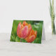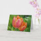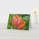 Min originalkonst visas på detta fina påskkort, bestående av mitt fotografi av vackra rosa och orange tulpaner, bearbetade med en akvarelleffekt för ett illustrerat och lekfullt utseende. Framsidan av kortet lyder "Glad Påsk!" och insidan av kortet lyder "Önskar dig kärlek och lycka på denna påskdag!". Ett bra kort för alla blomsterälskare.