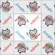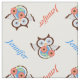 Vår uggla och namn personlig mönster, med ett sött fågeldjur i vår uggla i blått och brunt och korallblommor med himmel grönt och ditt namn. Den här snygga anpassadet är underbar för ett barnrum och en daghem. En inslag av Trina Clark.