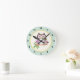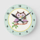 Vår uggla med mint grönt var en väggklocka i gräns, med en söt vår uggla i lila och mörk brun som höll en blomma i sin beak (räkning) på en gren med grönt löv och grönt mönster gräns i elfenben. Du kan ändra text och lägga till ditt monogram eller initialer. En bra, kvinnlig design för barn eller kvinnor från uggla älskare. Några inslag av Trina Clark.