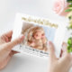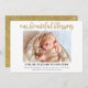 Ett kort för födelseanmälan "Vår vackra välsignelse" baby är enkelt och elegant. Snygg handskrift och kalligrafi stil-skript i guld/glitter. 1 foto i vågrät- eller liggande orientering. Byt ut fotot mot ditt eget nyfödda baby. Unisex och elegant baby.