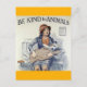 Vintage illustration av en ung kvinna sitta på en bänk, som håller en hund inslagen i en filt med titeln "Be Kind to Animals".