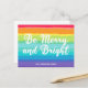 Vackert julkort i gay pride i söt regnbåge i färg som lyder: Mullig och ljus. Var högljudd och stolt med ett fantastiskt HGBTQ-helgdag. Anpassa med ditt namn i underbar vit text.