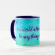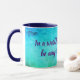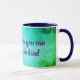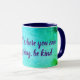 Var vänlig och inspirerande citattecken blå grönt mugg