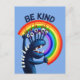 Skuggkort med ett lustigt tecken som håller en regnbåge och texten "Be Kind". För ibland måste vi påminnas om att det bara är en trevlig människa som gör världen lite bättre.