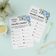Blåa blommor Var var de? Spanska och engelska versionsspel ingår (front and back). Ändra formuleringen till engelska och spanska versioner. Om du vill ha ytterligare anpassning (ändra ordalydelsen, lägg till eller ta bort antalet foton, teckensnitt färg, teckensnitt stil ) klickar du på personanpassa, rullor ned och klickar på länken "klicka för att anpassa ytterligare". HUR DU SPELAR: Visning foton av brudgummen på olika platser och numrera dem. Gäster skriva ner sin gissning på varje foto och den som har de mest korrekta svaren vinner!