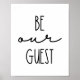 Utformningen består av frasen "Be vår gäst", som är en typografi som poster väggkonst som har en ren och modern utformning som är perfekt för att göra ytan ljusare och ge någon form av personlighet. Den här fina utskriften kan vara mer personlig genom att du lägger till din egen anpassningsbar och ändrar färg. Den här designen har en modern känsla och skulle se underbar ut i en modern lägenhet eller ett loft rum.