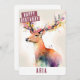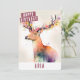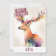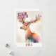 Ett sött födelsedagskort med ett blommande hjort som firar vår på framsidan med "Grattis på födelsedagen" i ett vitt, fetstilt teckensnitt med versaler. Anpassa fronten genom att lägga till ditt/dina namn. Kortets baksida har plats för det skrivna eller handskrivna meddelandet.