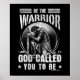 Konstruktionen har en kraftfull krigare som sitter i pansar, niger med huvudet böjt i vördnad och lyhördhet för Gud. Fetstilen under bilden lyder: "Var Warrior God kallar dig," inspirerad av 1 John 5:4, som betonar den styrka och seger som kommer genom tron på Gud.