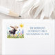 Returetiketter med vattenfärg Moose i ett vår-landskap. Anpassade.