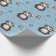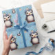 Vår Watercolor Penguins with Flowers in Blue Presentpapper
