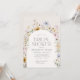 Vänner och familj i inbjudan för att fira den brud som ska finnas med den här eleganten, den temainbjudan för vår-blomman, som innehåller vildblommor med vattenfärg i muterade pastelltoner.