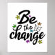 Ett positivt och inspirerande ordspråk som "Var förändringen" med fet svart, handskriven stil-text med återblommor och fjäril på en neutralt som du kan anpassa till färg efter ditt val.