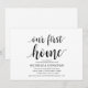 Vårt första hem, inbjudningskort för husuppvärmningspartiet. Planerar du en party för att fira ditt nya hem med din familj och dina vänner? Inbjudan era gäster med det här vackra och perfekt Rustic-kalligrafin-kalligrafkortet som kallas för husuppvärmningspartiet. Lägg till information i matchande svart teckensnitt/text.