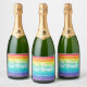 Vackert regnbåge party champagne flaska-märke i söt fet färg, som lyder "Merry and Bright". Helgdag för en hbt-familj med gamla gay pride-teman.