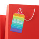 Vackra regnbåge julklappen party i märkre i söt djärv färg som lyder "Merry and Bright". Helgdag med det ytliga temat gay pride presenterar märkre för en HBT-familj.