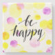 Modern kalligrafiinspirationstext - var lycklig - vid vattenfärgpunkter för rosa och gult - bakgrund | Bigstock® - Alla Höger reserverade.