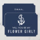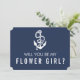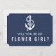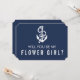 Inkludera din blomsterflicka i bröllopsexcitationen med detta vackra kort. Designen har en repp och ankar illustration på en klassisk marinblå bakgrund. Koordinerande tillbehör finns tillgängliga i vår butik.