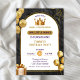 Pojkar, lilla prins födelsedagsfest inbjudan-mallen. Kute Prince-födelsedagsinbjudan till guld odlad