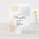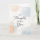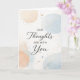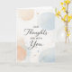 Ett mjukt modernt designat kort som säger, "Våra tankar är med dig."