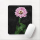 Ett foto av en rosa Zinnia, med dubbla rosa petalblomma med gult stjärnor, i en trädgård.