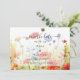 Meddela din speciella dag med vår vårängsblomma "Save the Date"-kort. Detta förtrollande kort har en fantastisk avbildning av en våräng dekorerad med en livfull mängd vilda blommor. Den akvarellillustrationen fångar naturens skönhets väsen och ger en pittoresk bakgrund för dina bröllopsdetaljer. Den dominerande färgpaletten inkluderar fantastiska gula blommor som utstrålar värme och glädje, som smidigt övergår i en kaskad av röda och orangea blommor och slutligen ömtåliga blå blommor som tillför en touch av stillhet. För att anpassa detta ytterligare, klicka på länken "anpassa ytterligare" och använd vårt designverktyg för att justera denna mall enligt dina önskemål.