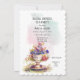 En mycket snygg Bröllopsdusch Teapartynsning inramad i vårblommors färger och en färgrik dessertuppläggning omgiven av blommor.