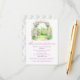Vacker bröllopskort med en blomsterbåge och rosa lila blommor. Perfekt för ett vår- eller sommarbröllop. Orden kan ändras för att passa dina egna detaljer eller krav