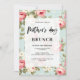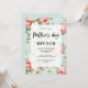 Elegant, blommig mormorsdagsbrunch-inbjudan med turkos bakgrund och små rosa rosor.