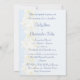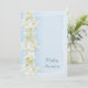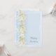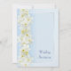 En sidoborderdesign med krämvita narcissusblommor och lemonengula trumpeter på en blek, babyblå skuggad bakgrund och en kant med en silvergrå skuggad linje (observera att detta inte är silverbläck utan en skuggeffekt). Texten är i en matchande mörkare blå formell skrift, med alla detaljer om ceremonin och mottagningen på baksidan att fylla i. På det grundläggande vita papperet som enkelt kan bytas.