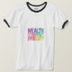 T-shirt-designen för "Wealth is Morgondagens affärsmöjlighet" har ett stiliserat timglas i mitten, med guldfärgat mynt från överkammaren till grund. När mynt samlas i underkammaren förvandlas de till fröplanta som växer till vibrerande växter, vilket symboliserar tillväxt och framtida potential. Omkring timglaset, ljusstrålar eller subtila växlar tyder på att tiden går och att man bygger för framtiden. Uttrycket "Wealth is Morgondagens affärsmöjlighet" är elegant skrivet över och under timglaset, med "Wealth" i ett fet, metalliskt typsnitt för att betona dess betydelse. I paletten färg finns golder, gröntar och djupa blåsor i rik, som återspeglar välståndet och morgondagens löfte.