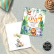 Ett mindre värdepris på 4,5 x 5,6 tum som tillhandahålls utan kuvert - A6 är det närmaste storleka att passa. Vild Ett kute-ungeldjur 1:a födelsedagen Party. Söta safari-djur och skogshugga för din lilla födelsedag! Vilden finns i ett skript med fast snyggt och resten av texten kan lätt personlig till dina egna uppgifter. På baksidan, några fler djungelkuber och ballonger.
