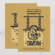 En fin "mans" inbjudan med en skylt över en krog med en stor ölmugg. Bakgrunden är mörkt guld och skylten är ljusare guld och den hänger i en kraftig svart kedja. Perfekt för en manlig festlig tillställning.