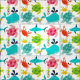 Den gulliga, roliga, färgrika underbara för barn eller någon, som älskar havsvarelser, detta tyg har en vitbakgrund och raddavarelser från de inklusive havssköldpaddorna för havet av rosor, grönt och blått, blåttval med vattenutloppsrör, krabbor av rött och gult, och havshästar i regnbåge färgar!