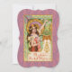 Detta eleganta jugendkonst-kort tillkännager vårens ankomst. Det är en frodig uppvisning av färg, mönster och blommor. En ung kvinna vidrör en blommande trädgren mitt i stiliserade fästingar, ramar och hängen. Den ursprungliga bilden har kombinerats med en mönstrad bakgrund för att komplettera färgerna och designen på det vintage-kortet. Ett område för text möjliggör personalisering.