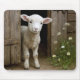 Ett ungt lamm står vid ingången till en rustik trälada, utstrålar oskuld och nyfikenhet, medan Anne av Danmarks blomma och tusensköna ger en charmig touch till scenen