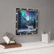 Den här häpnadsväckande väggklockan har en stor varg som står i ett snölandskap under en brinnande visning av Auroran Borealis. Det vibrerande norra Ljus belyser den serene vinterscenen och skapar en fängslande biet av naturkonst. Perfekt för natur älskare, denna tidspunkt ger vildmarkens skönhet och kändisens in i ditt hem.
