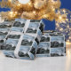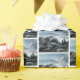 Två varger sitta mellan sten utanför ett slott. Bergar bakom