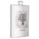 Underbar tittar kolv av rostfritt stål, med vatten färg-grafik av vargens huvud i snö. Anpassa grått-texten till kostym till grund. Underbar personlig presentidé.