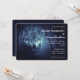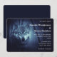 En bröllopsinbjudan med en bild av en magisk, mystisk varg som står i en skog med skonsam snö som faller runt. Blått ögon verkligen är en slump för dig.