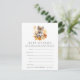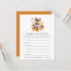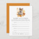 En vattenfärgad illustration av en valp i vargen baby, omgiven av höst löv i skuggor av orange, rött och gult högst upp på kortet. Anpassa kortet med instruktioner om anpassningsbar, gissningskriterier och mamma till att duscha namn och barn. Utformningen koordinerar med vår duschsamling av Cute Woodland Animals.